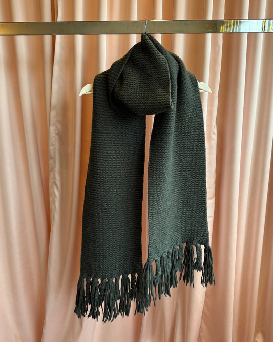 Dark Green Alpaca Blend Knit Fringe Scarf