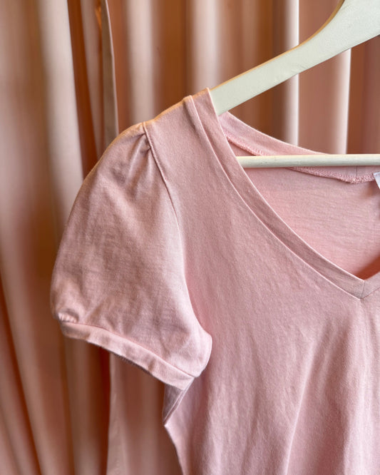 French Brand Pink Puff Sleeve V-Neck T-Shirt