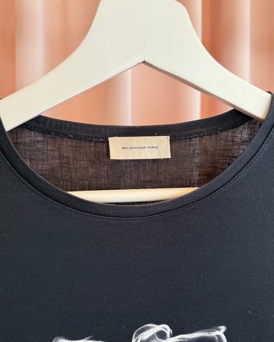Balenciaga 2009 by Ghesquière Smoke Print Linen Long Sleeve T-Shirt
