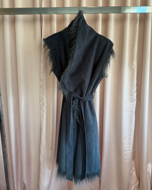 Diesel Reversible Dark Grey Shaggy Faux Fur Long Vest