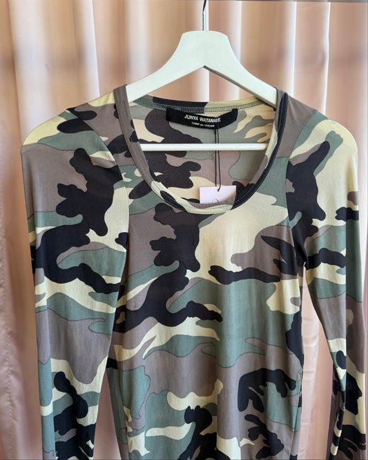 Junya Watanabe 1993 Camouflage Print Mesh Long Sleeve Top