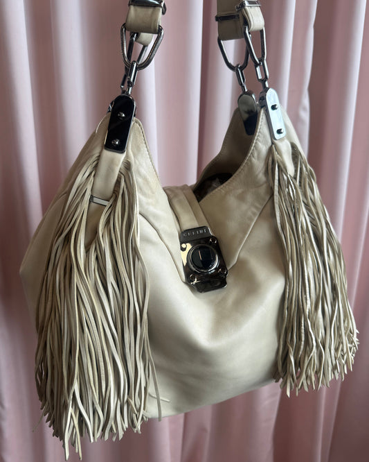 Céline Dimitri Cream Leather Fringe Hobo Handbag
