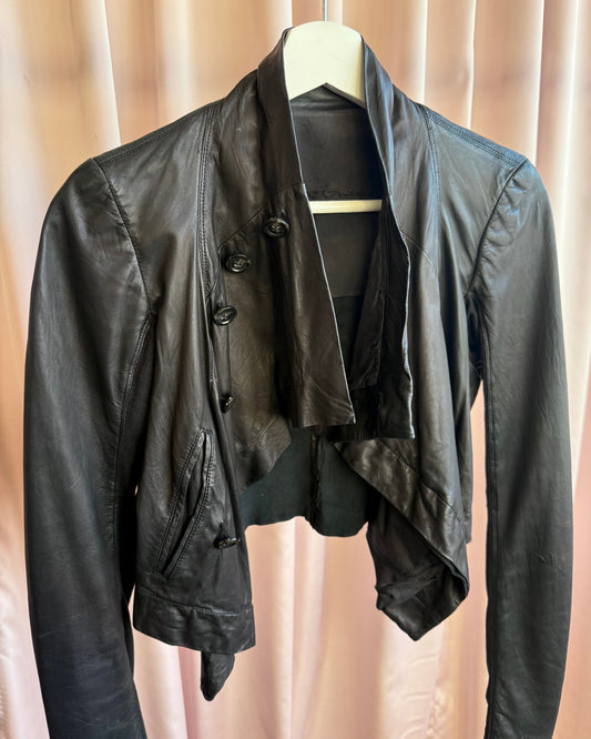Rick Owens Olmar & Mirta 2000's Black Lamb Leather Cropped Jacket
