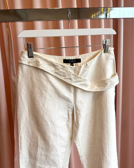 Gucci 2003 by Tom Ford White Belted Low Rise Slim Cut Trousers