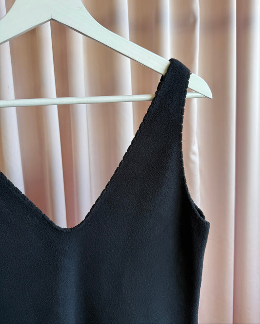 Japanese Brand Black Knit Button Up Overall Dress