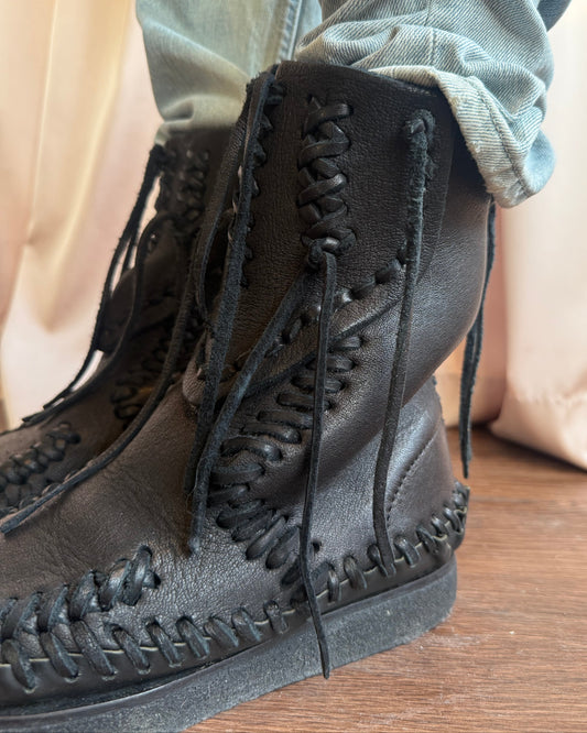 Ann Demeulemeester Black Leather Gladiator Sandals