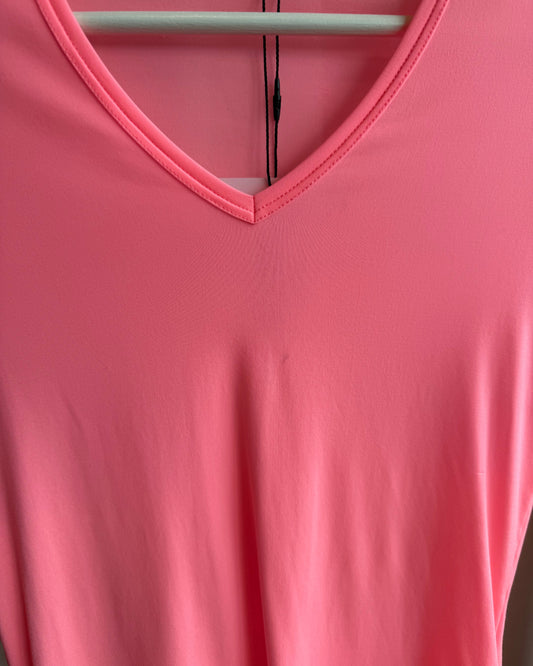 Jil Sander Neon Pink Nylon Stretch V-Neck Top