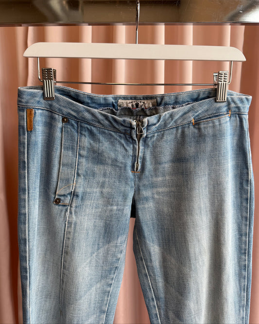 Fornarina Ultra Low Rise Faded Light Wash Flare Denim