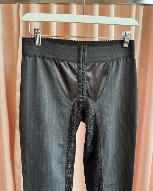 D&G F/W 2003 Pinstripe & Lace Panelled Slim Cut Trousers