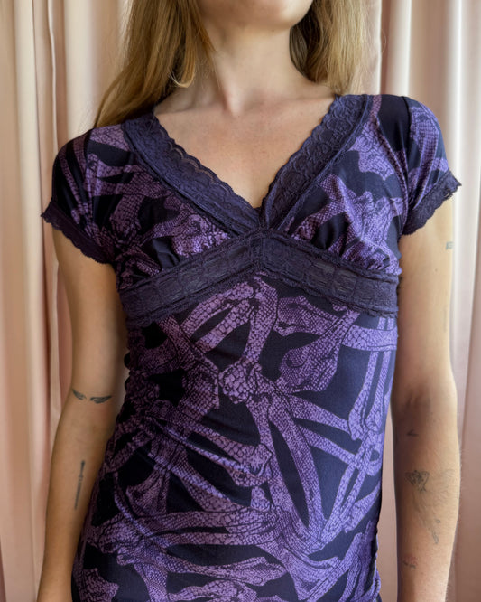 Hysteric Glamour Purple Bones Print Lace Trim DressRegular price $140.00 CADRegular priceUnit price / per-
