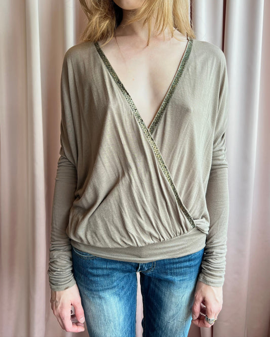 Gucci 2000’s Cashmere Blend Long Sleeve Surplice Top