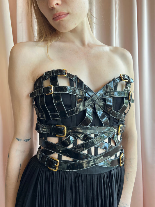 Dolce & Gabbana S/S 2007 Caged Bustier Black Silk Dress