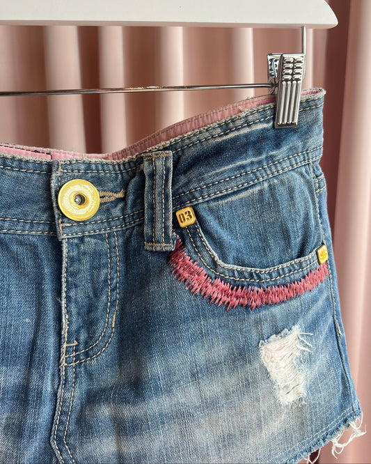 Japanese Brand Pink Embroidered Denim Mini Skirt