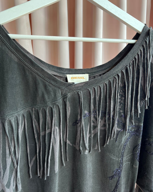 Diesel Off Shoulder Fringe Long Sleeve Top