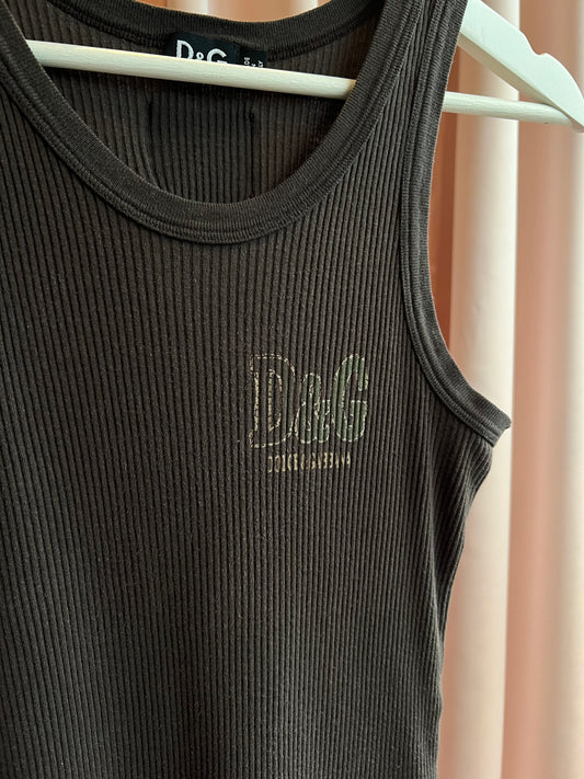 Sold outD&G Chocolate Brown Logo Ribbed Tank