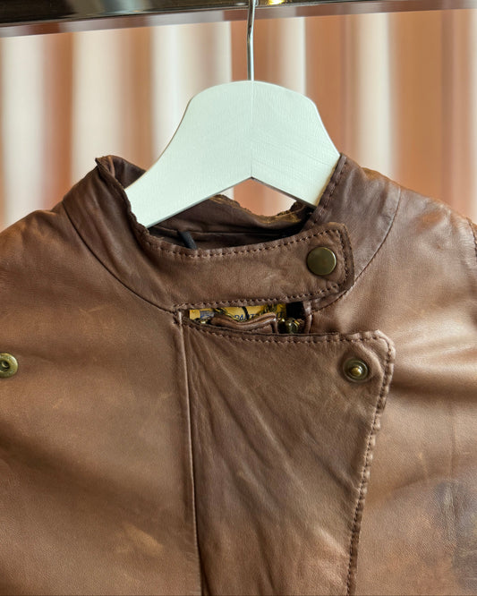 Italian Designer Perforated Beige Leather Jacket