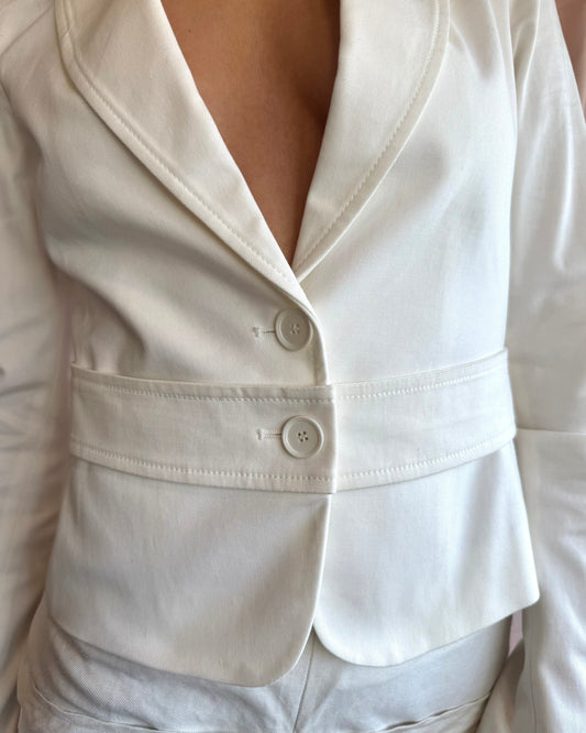 Patrizia Pepe Firenze White Cotton Blend Blazer