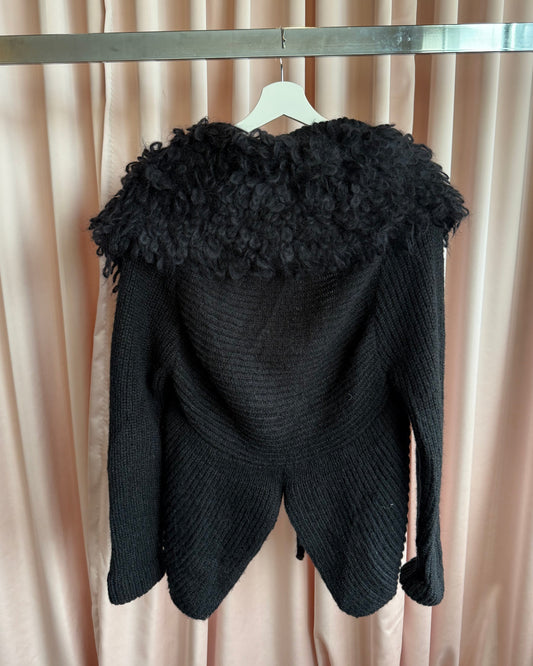 Japanese Brand Beaded Rabbit & Lamb Fur Collar Knit Shrug