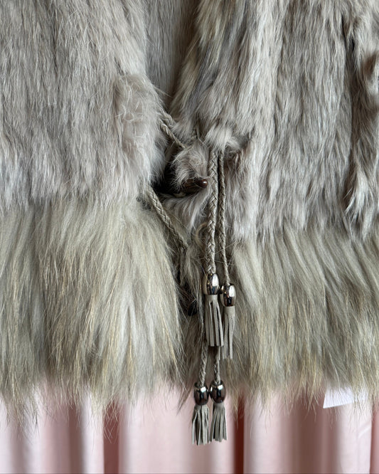 Japanese Brand Grey Rabbit & Raccoon Fur Horn Toggle Vest