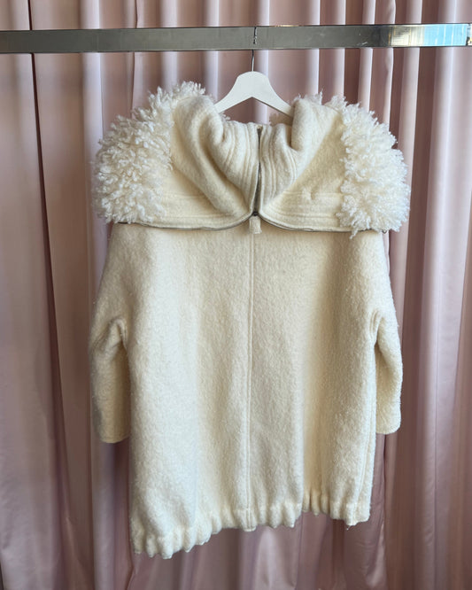 Italian Brand Ivory Wool Faux Fur Split Hood Coat