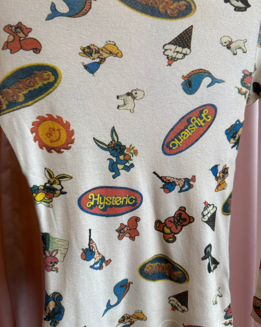 D&G Underwear 2000's Kitty Print Grey T-Shirt