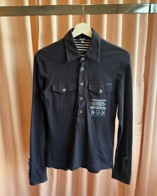 D&G F/W 2006 Men's Sailor Inspired Double Layer Long Sleeve Polo Shirt