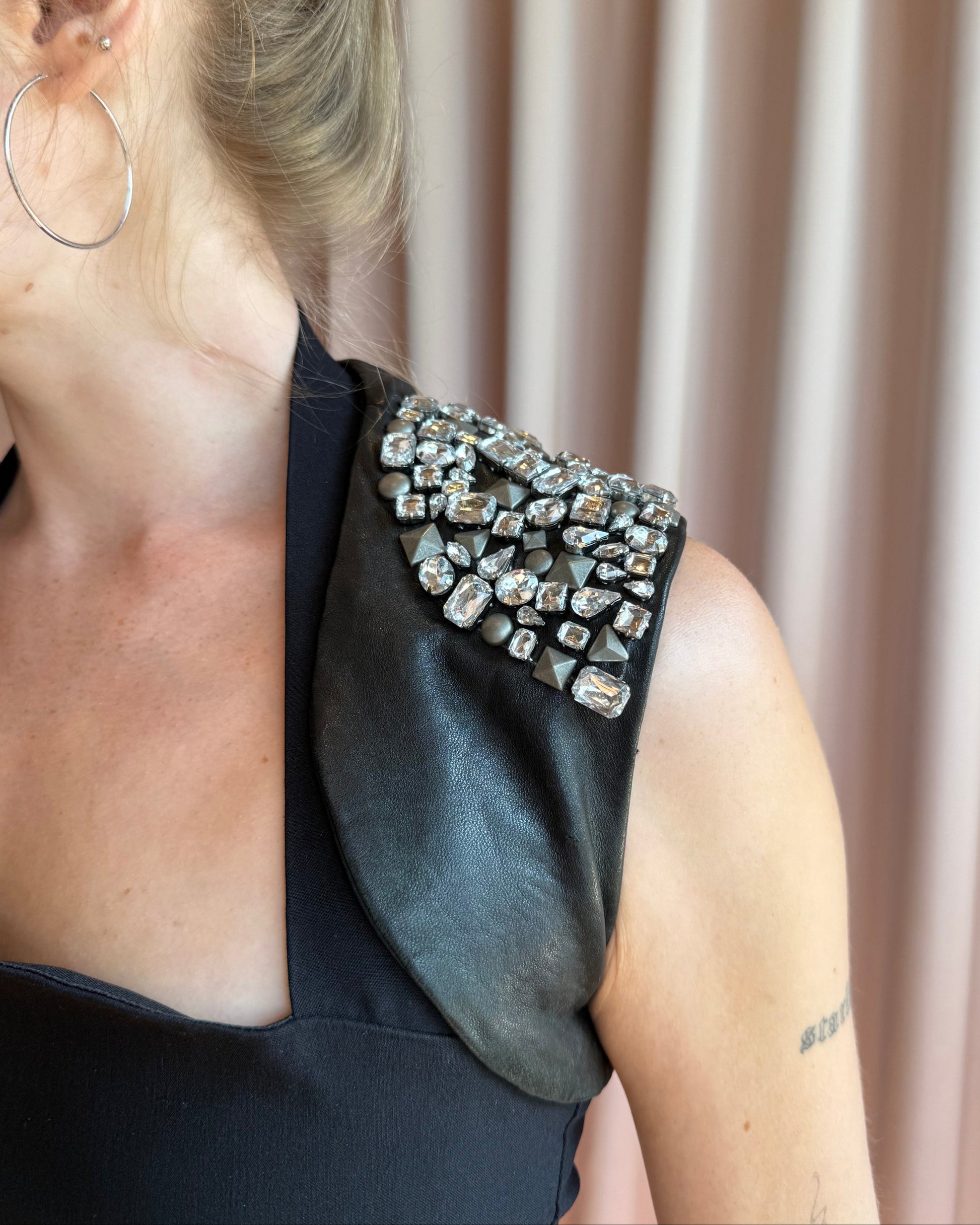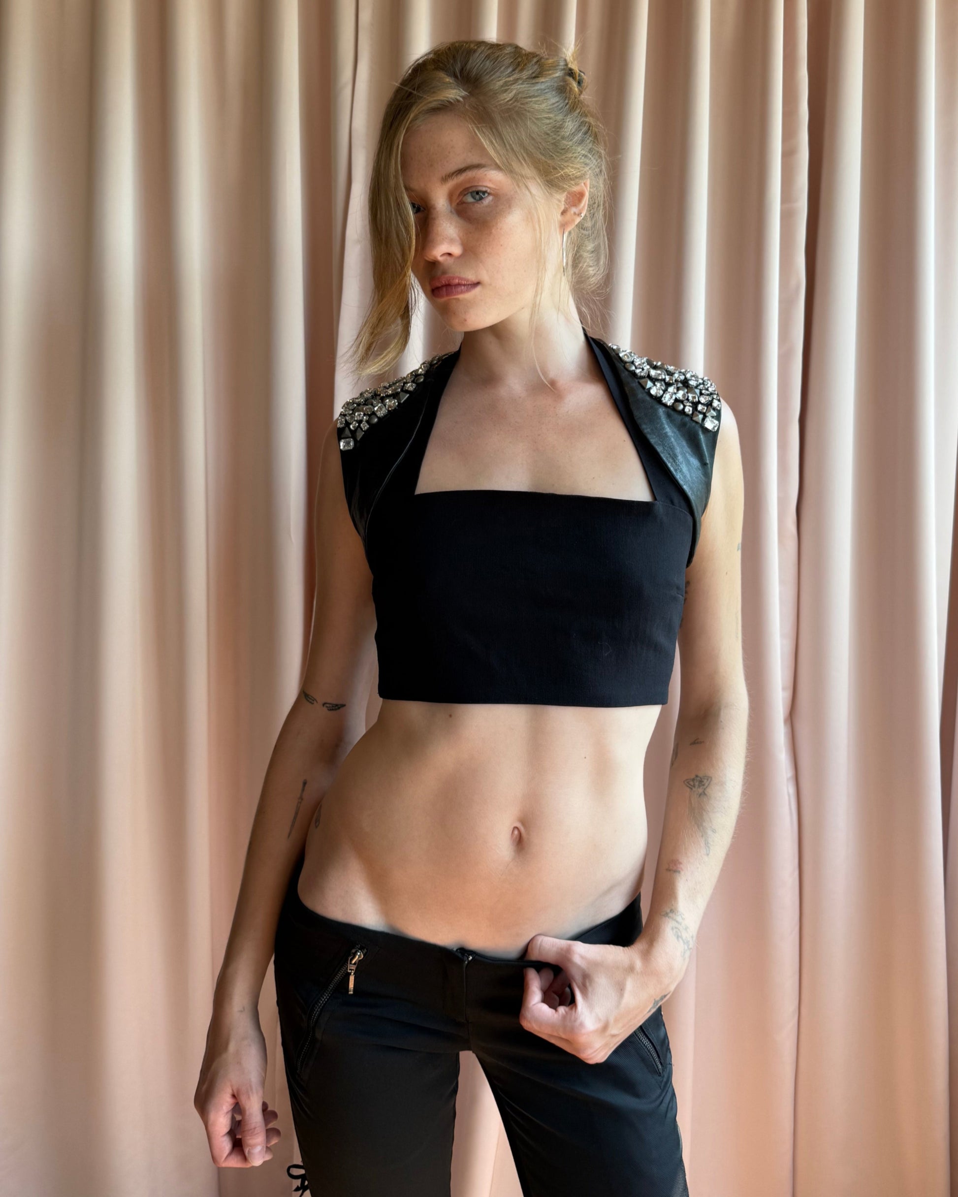 Bird by Juicy Couture Rhinestone Studded Leather Lace Up Bolero
