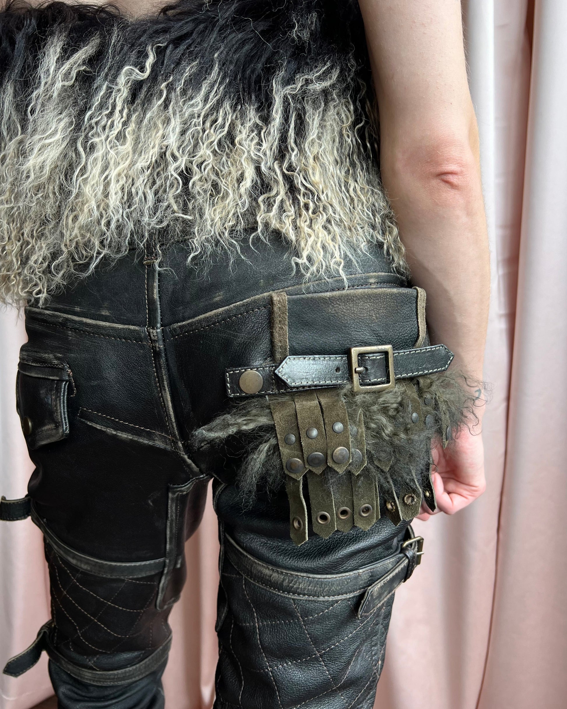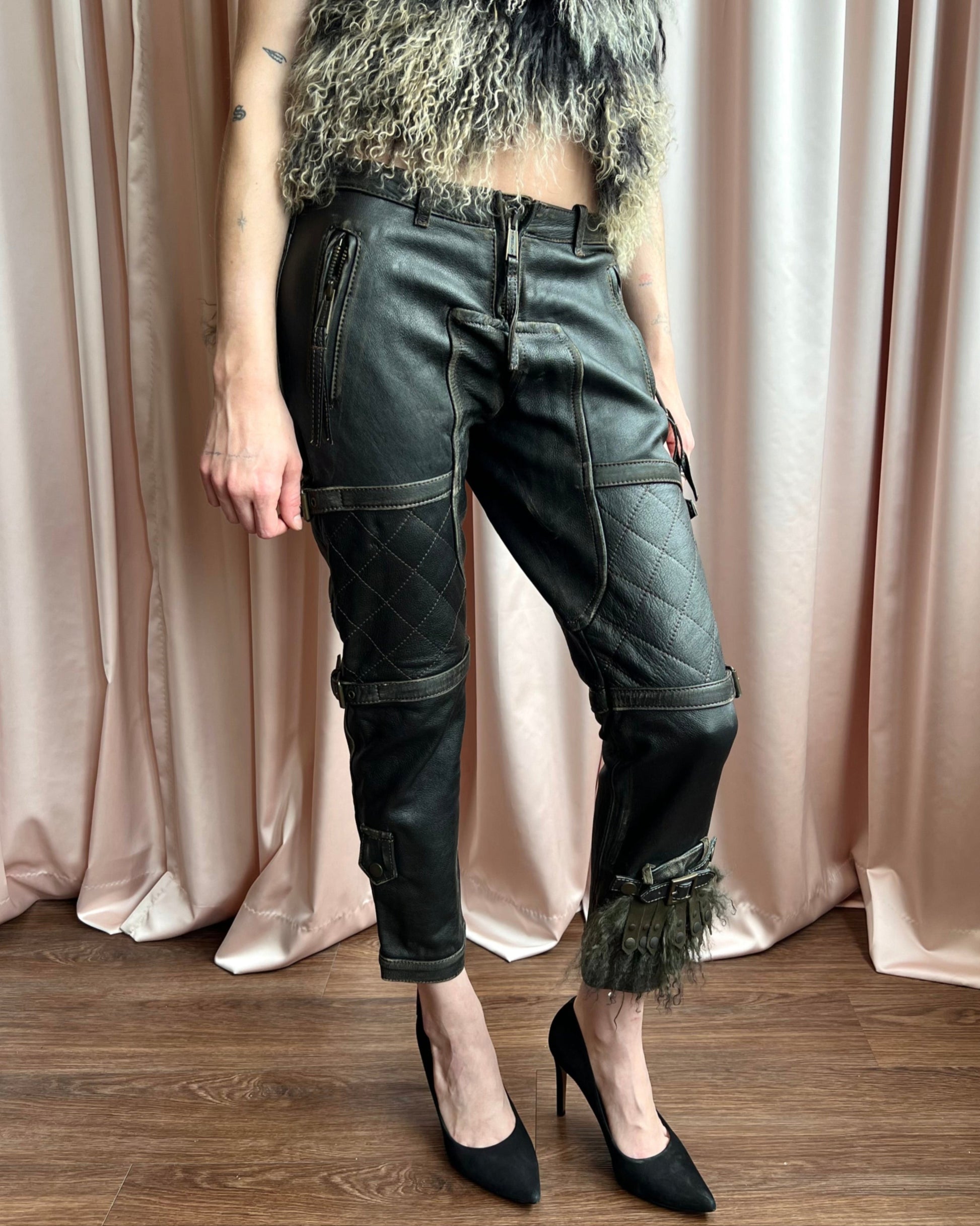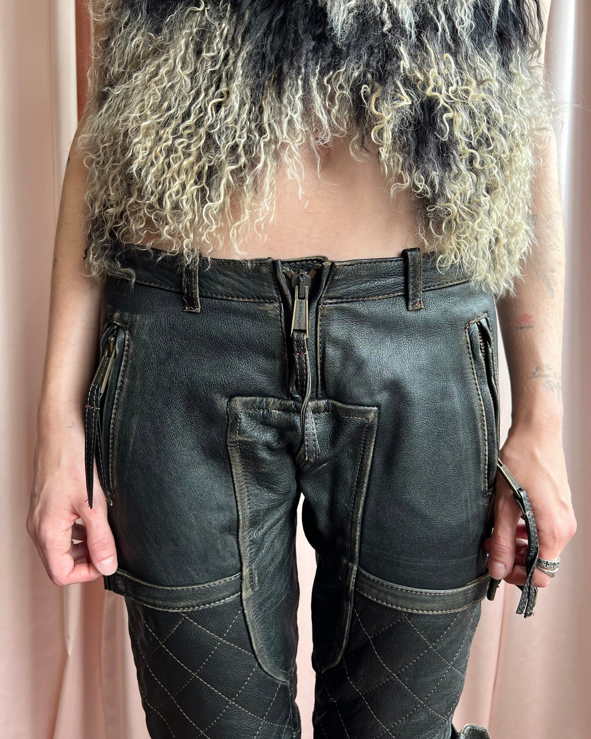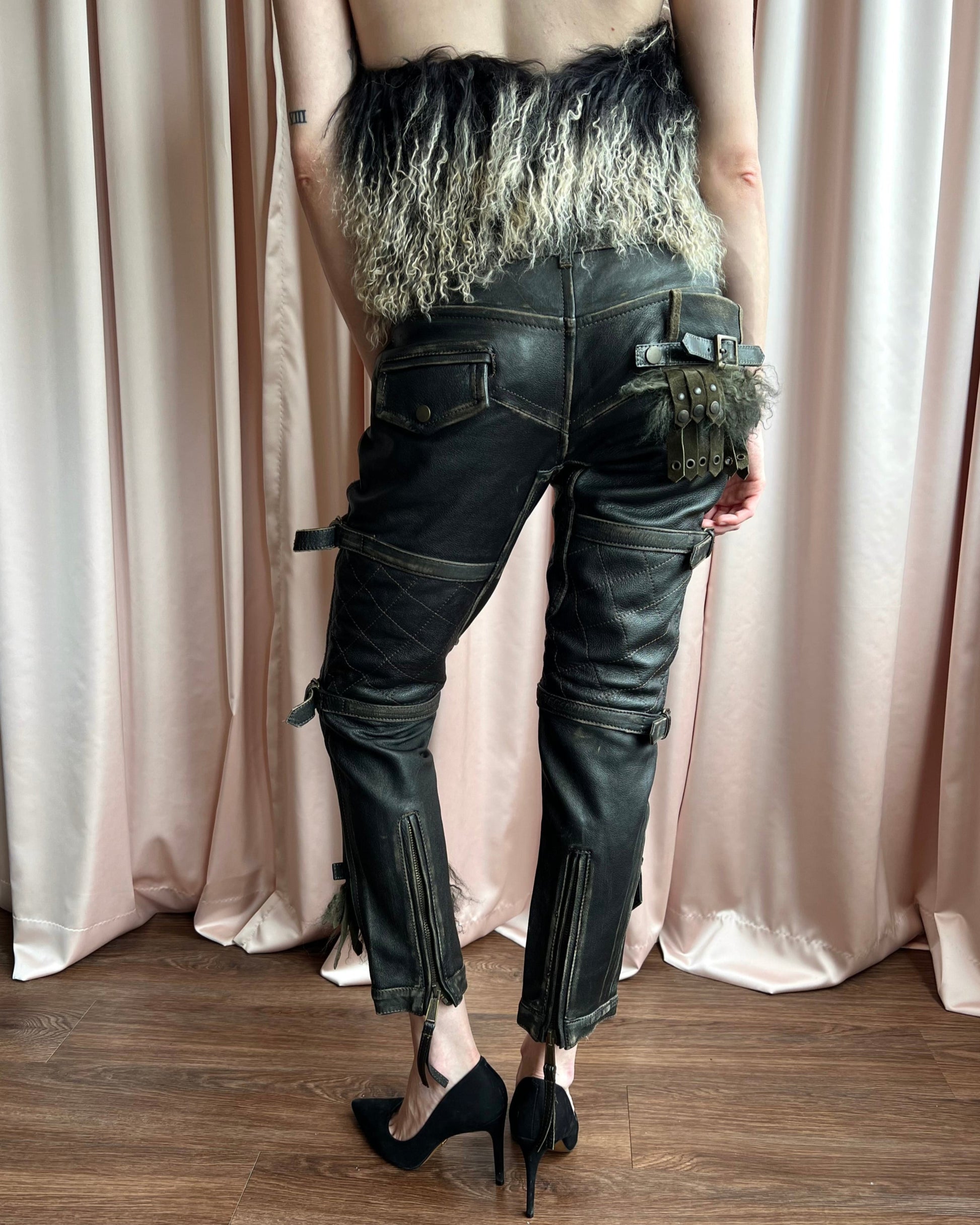 Dsquared² F/W 2005 Lamb Fur Accent Faded Leather Biker Pants