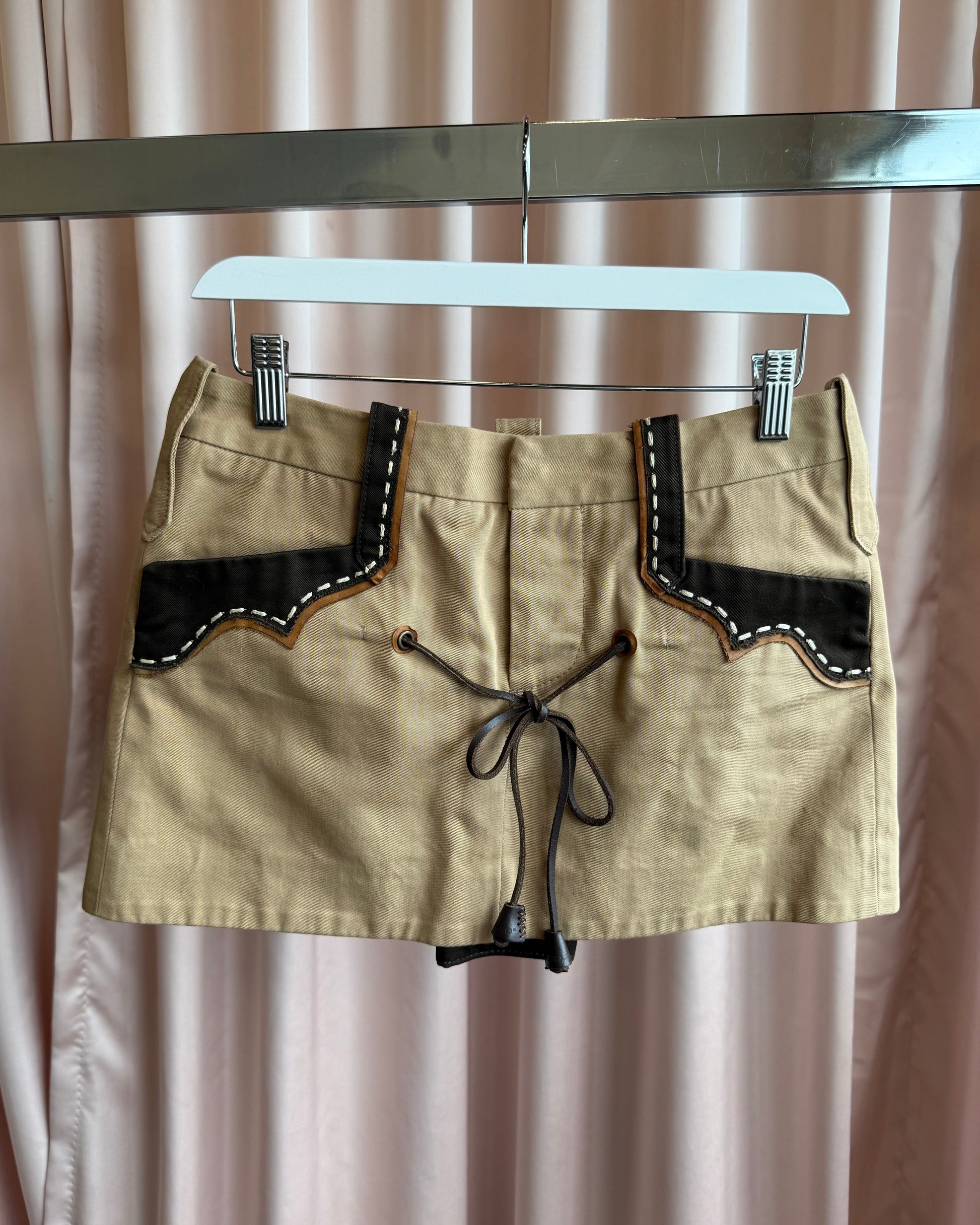Dsquared² S/S 2006 Leather Lace Khaki Mini Skirt
