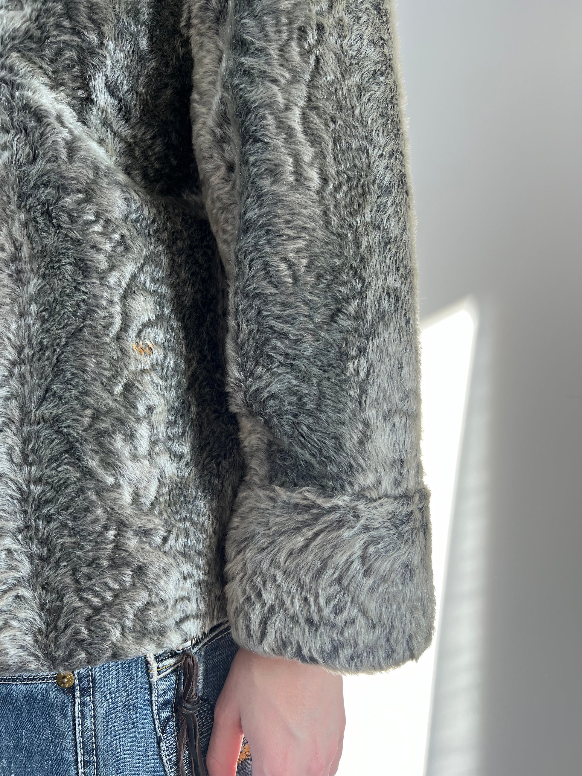 Single button closure. I believe it is faux fur but there are no inner tags so I can’t say for certain.