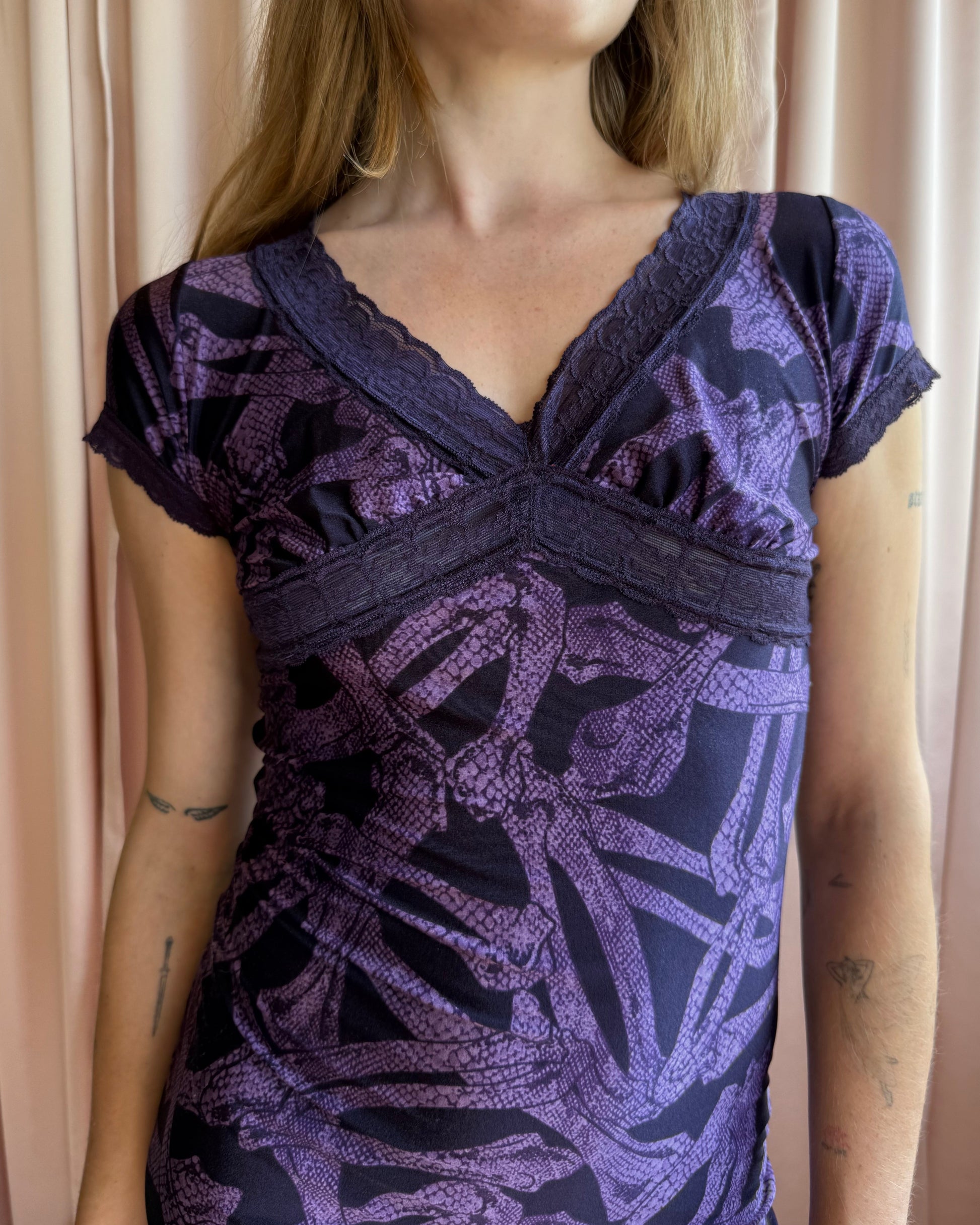 Hysteric Glamour Purple Bones Print Lace Trim Dress