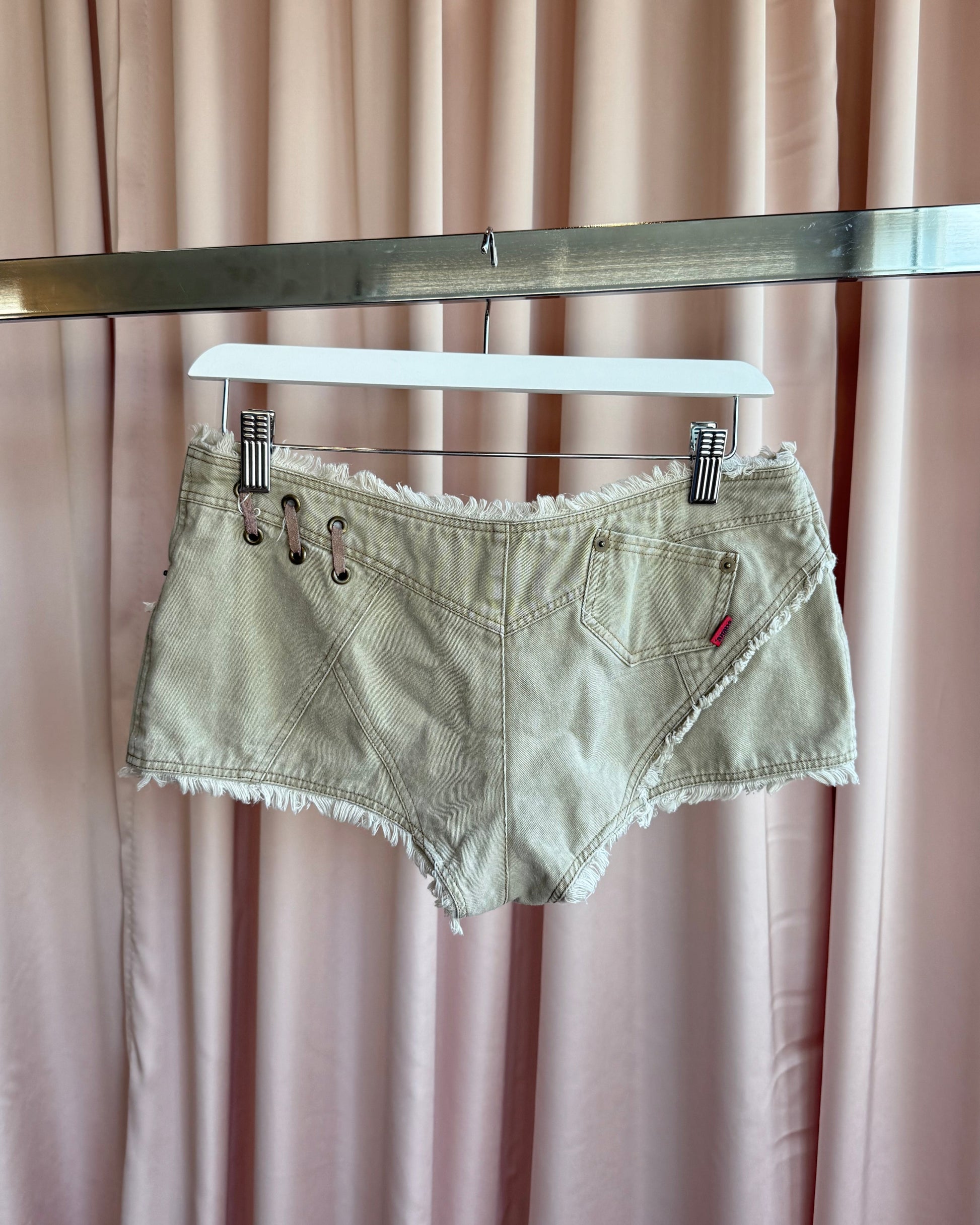 Japanese Brand Low Rise Lace Up Micro Mini Denim Shorts