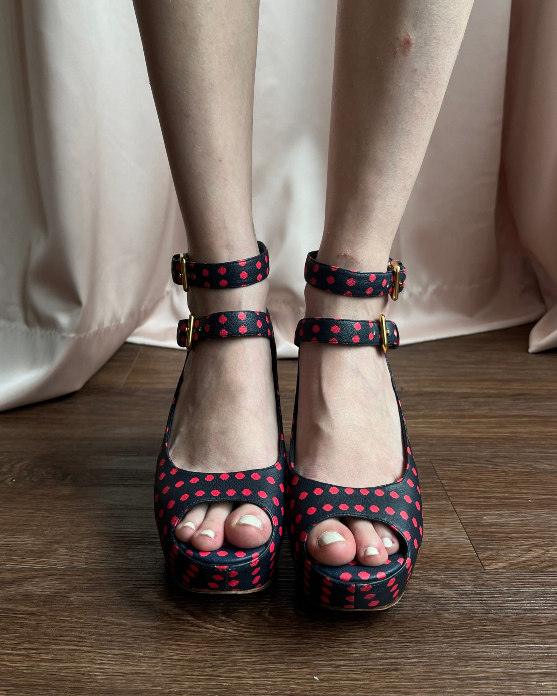Marc by Marc Jacobs Polka Dot Leather Platform Buckle Sandals