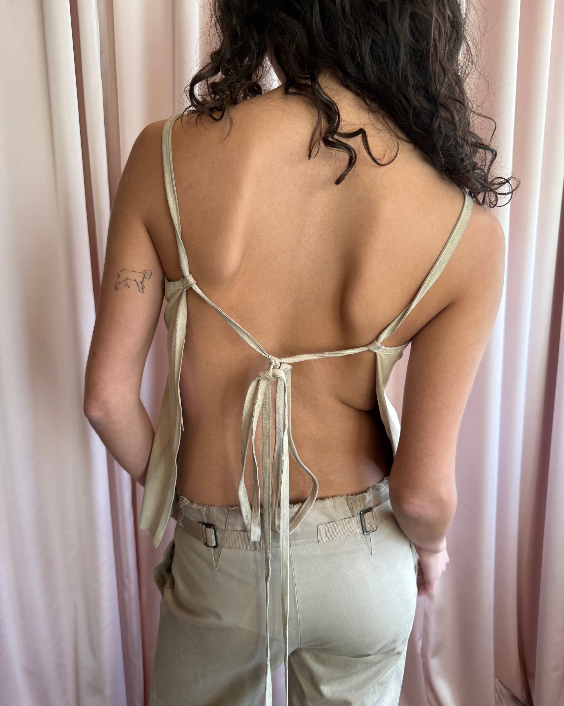 Plein Sud Deadstock 2000's Tan Suede Open Tie Back Tank Top