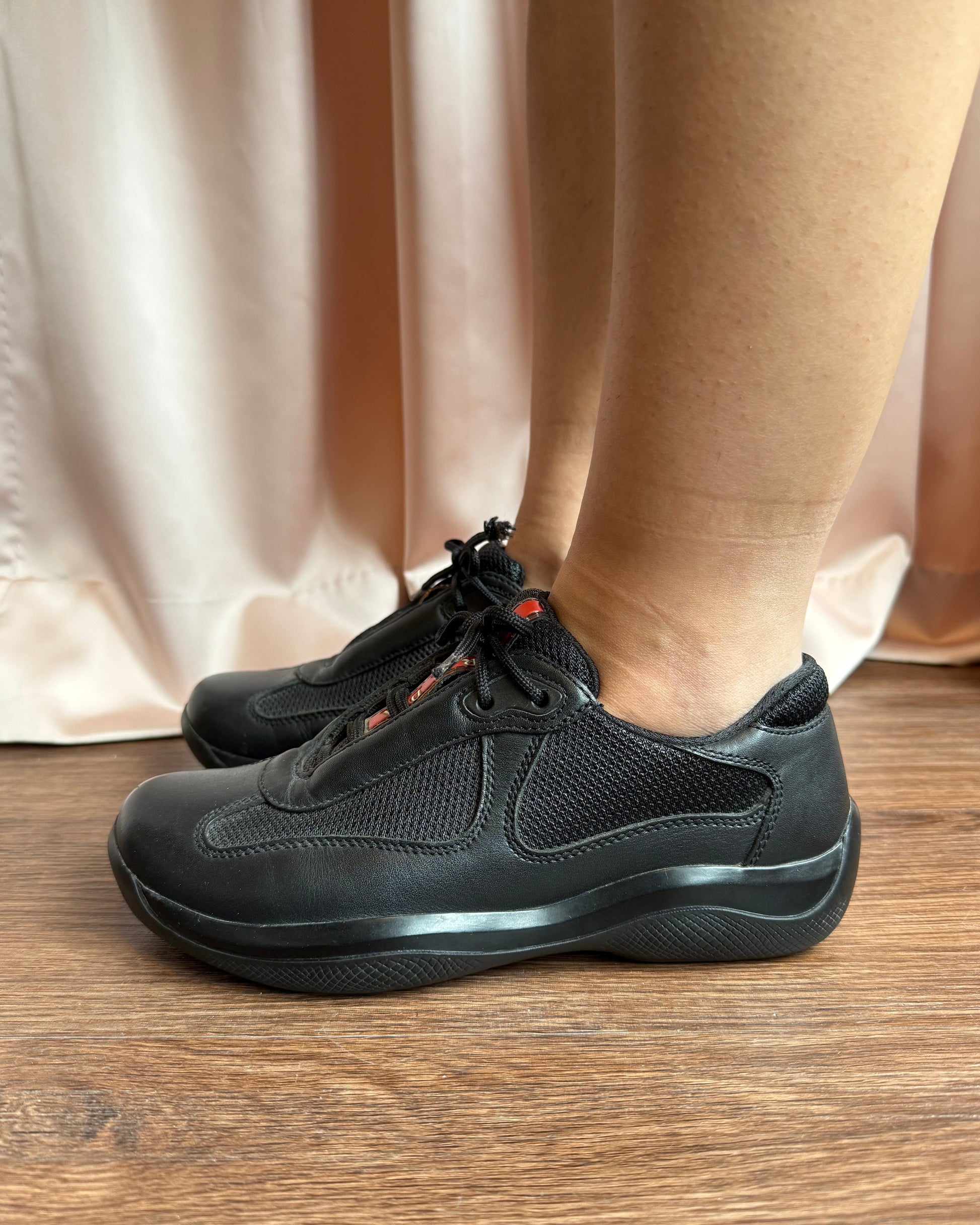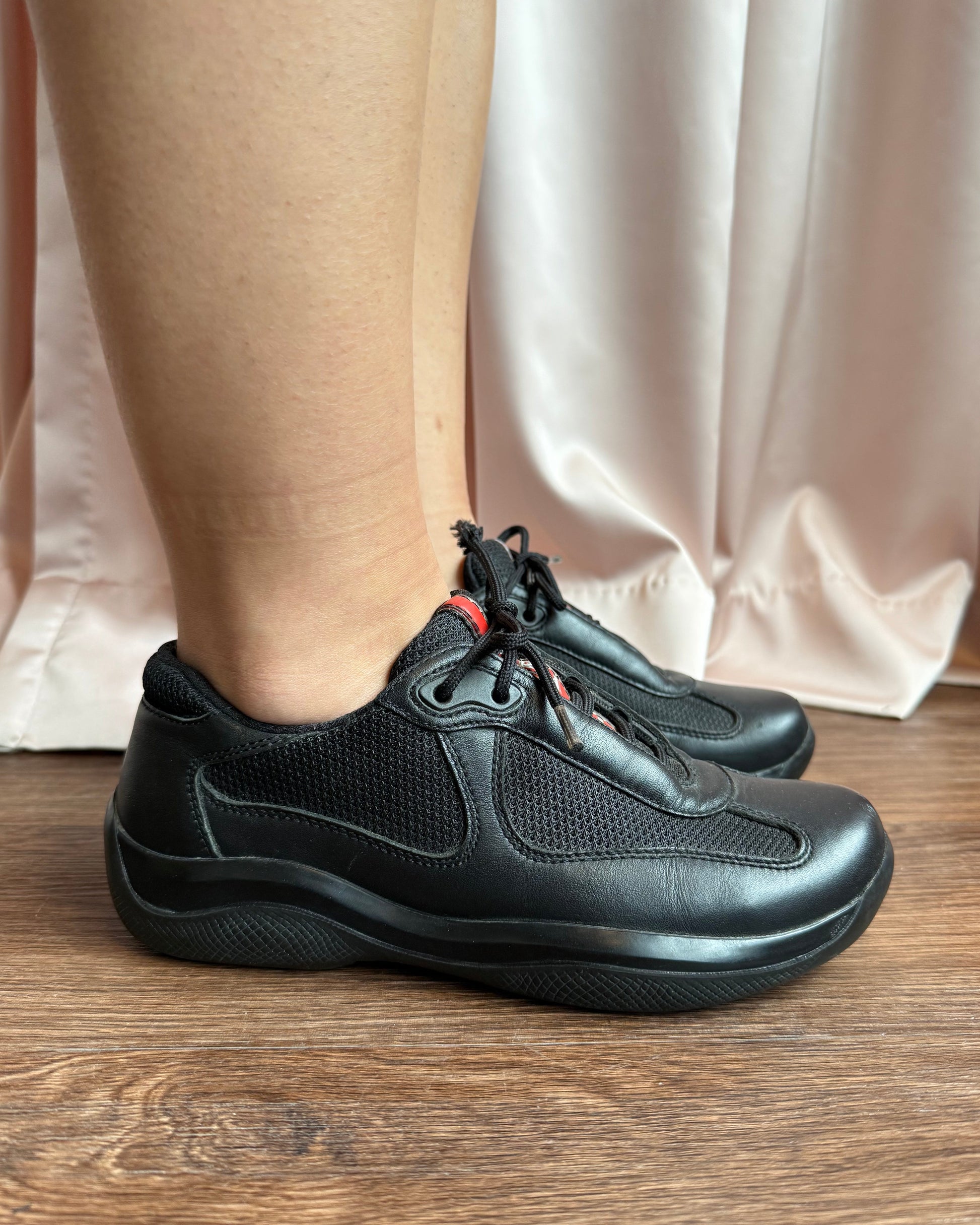 Prada America’s Cup Black Leather Sneakers