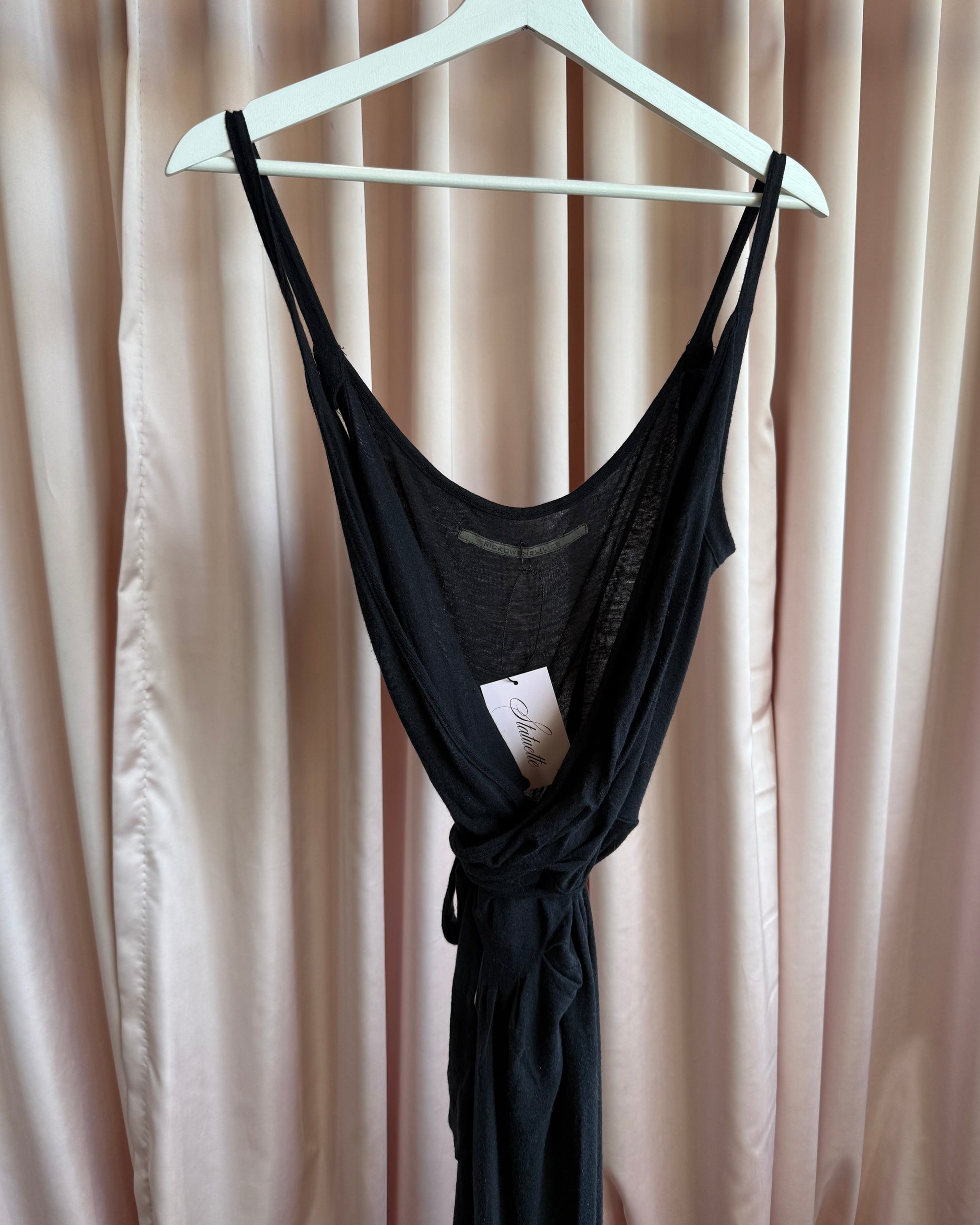 Rick Owens Lilies Olmar & Mirta Era Black Low Cut Sleeveless Wrap Dress