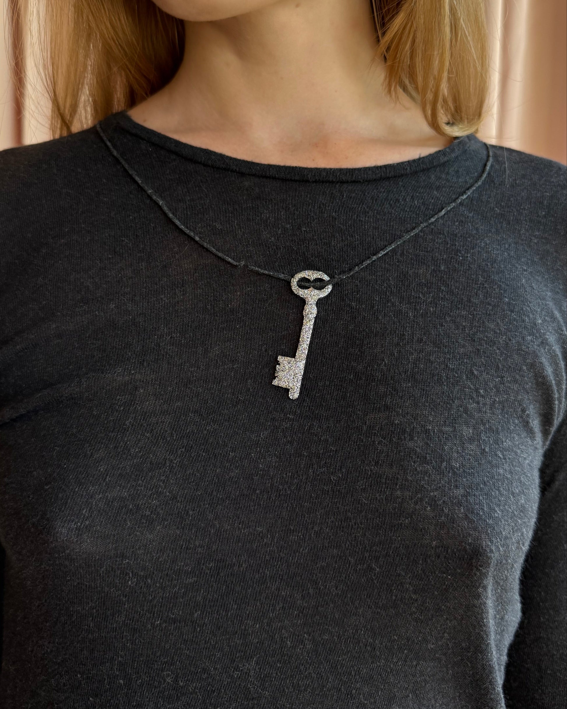 Beautiful long sleeve top as seen on the runway for Undercover's Fall/Winter 2005 collection by Jun Takahashi titled "Arts & Crafts". Composed of a slightly sheer cotton knit, featuring an attached decal of a silver key on a necklace. Portion of the necklace has broken apart, otherwise excellent condition.