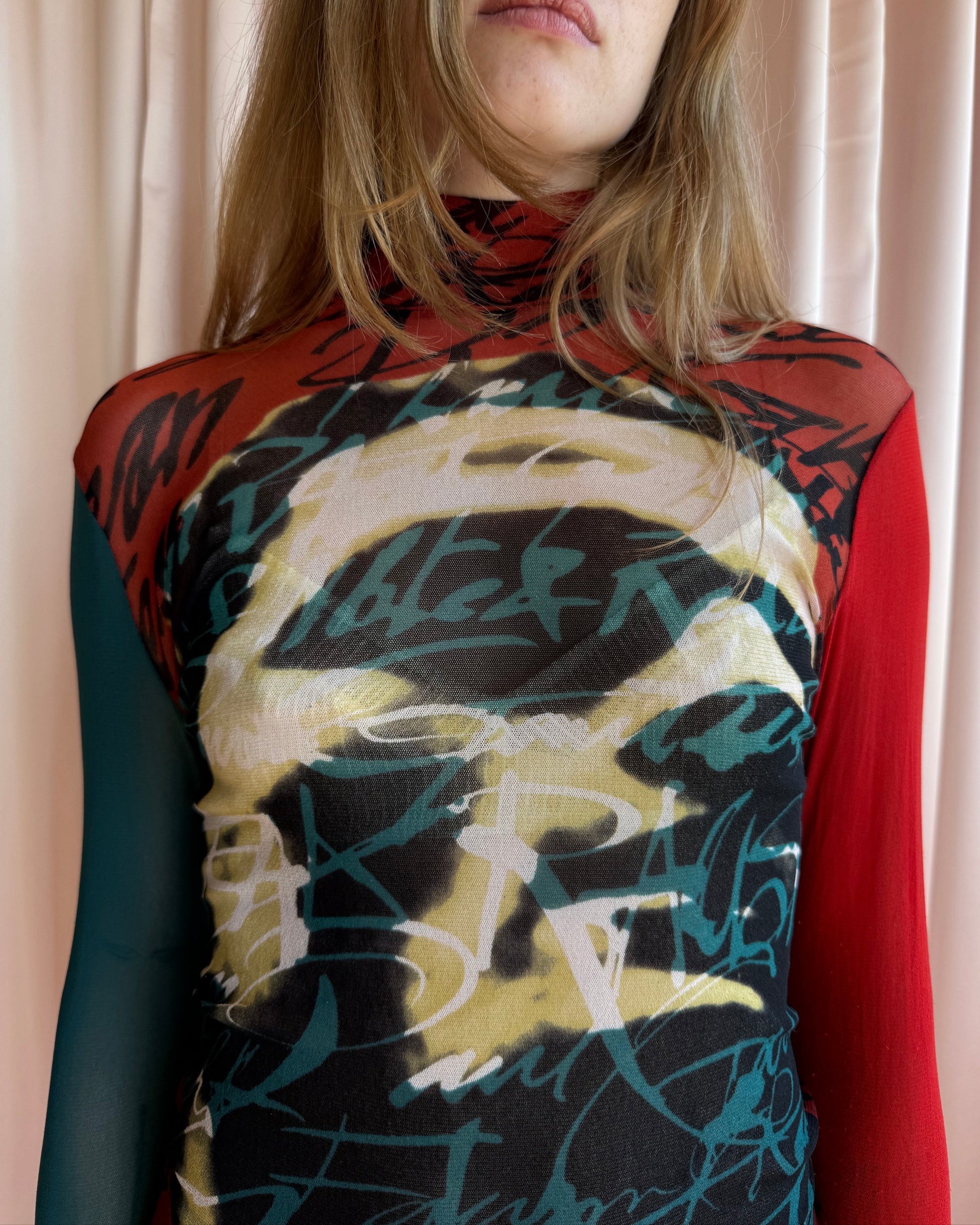 Jean Paul Gaultier F/W 1997 Printed Mesh Turtleneck Long Sleeve Top