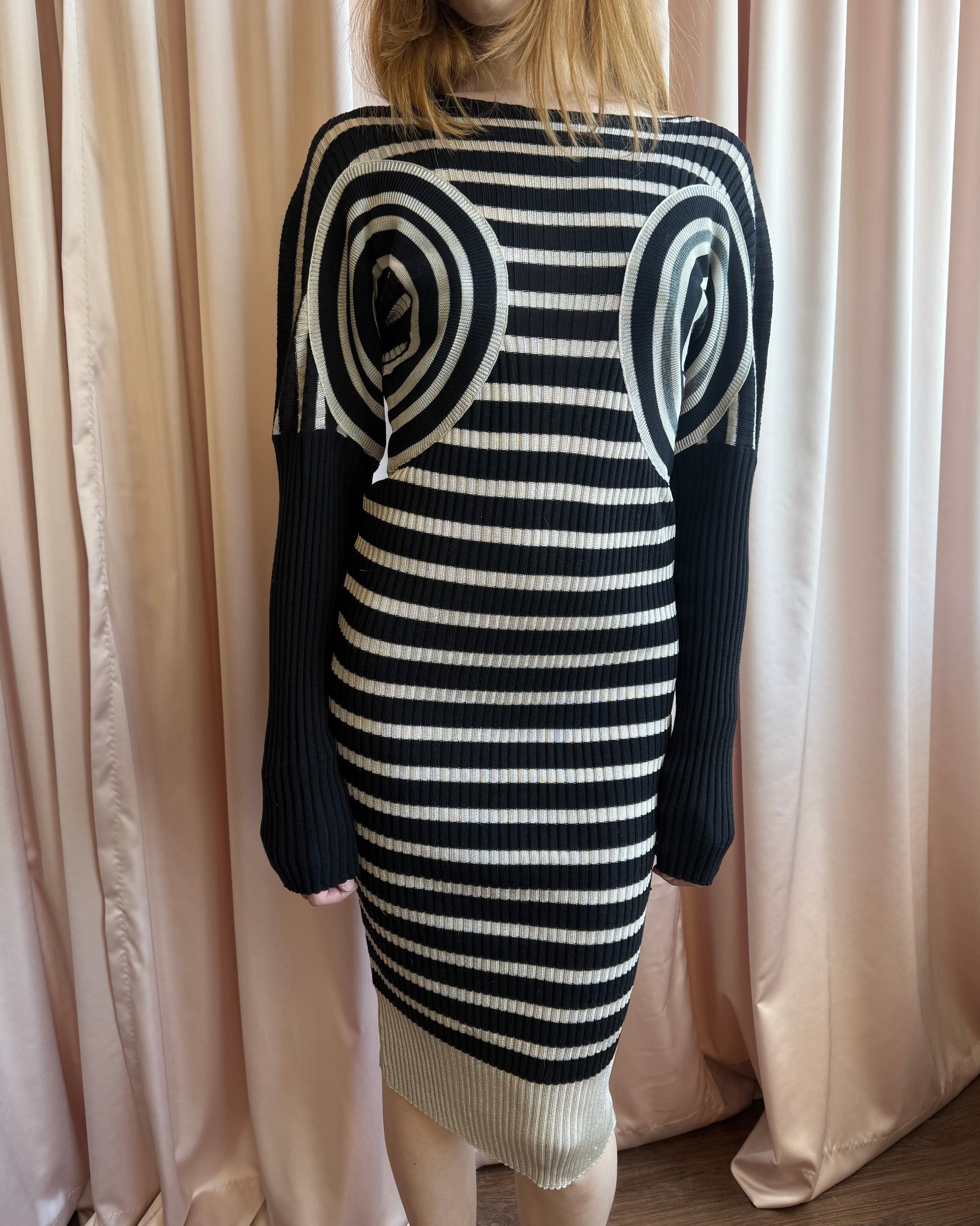 Jean Paul Gaultier Black & Beige Striped Long Sleeve Knit Dress